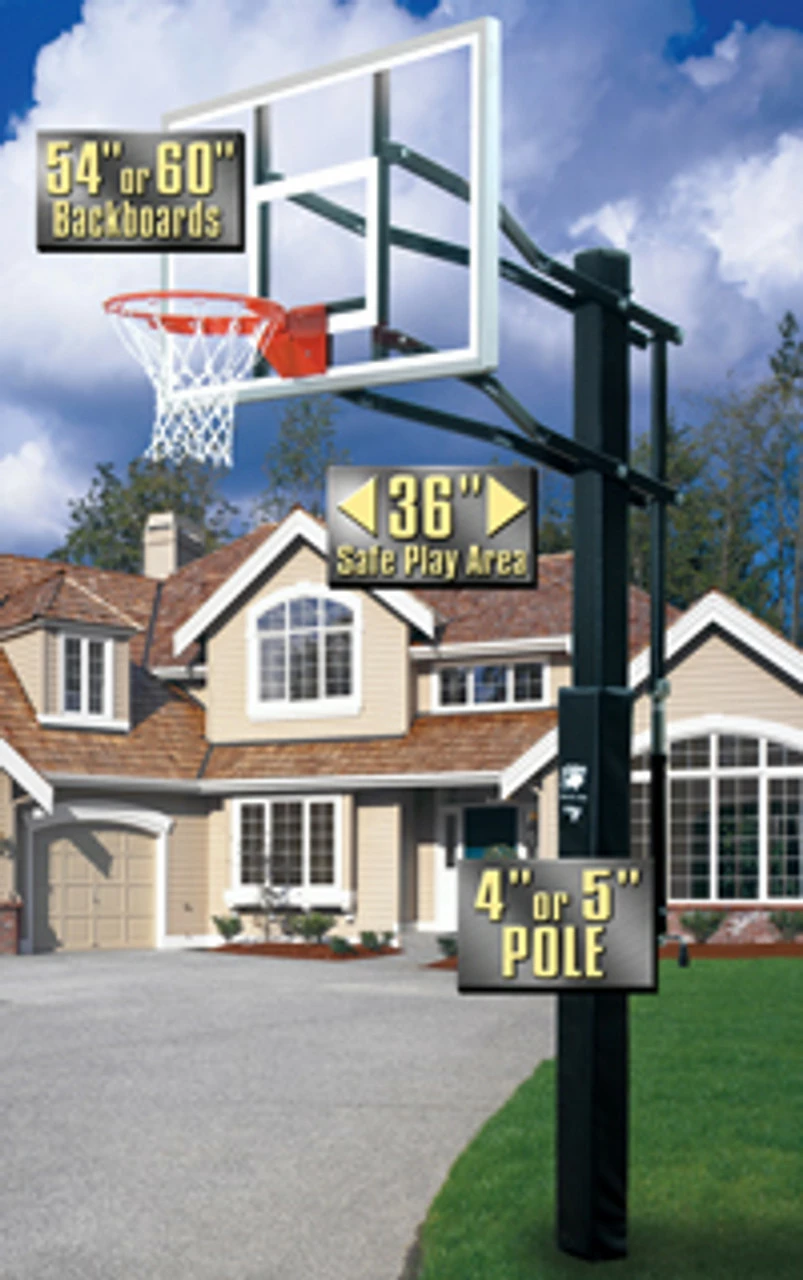 - 36 Inch Pole-to-Backboard Extension at 10 Feet; Increases as Lowered