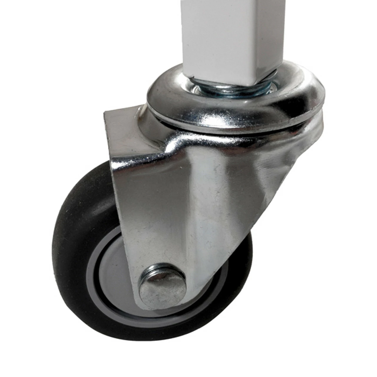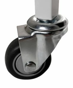 - Constructed of 1″ powder coated tubular steel with rubberized wheels