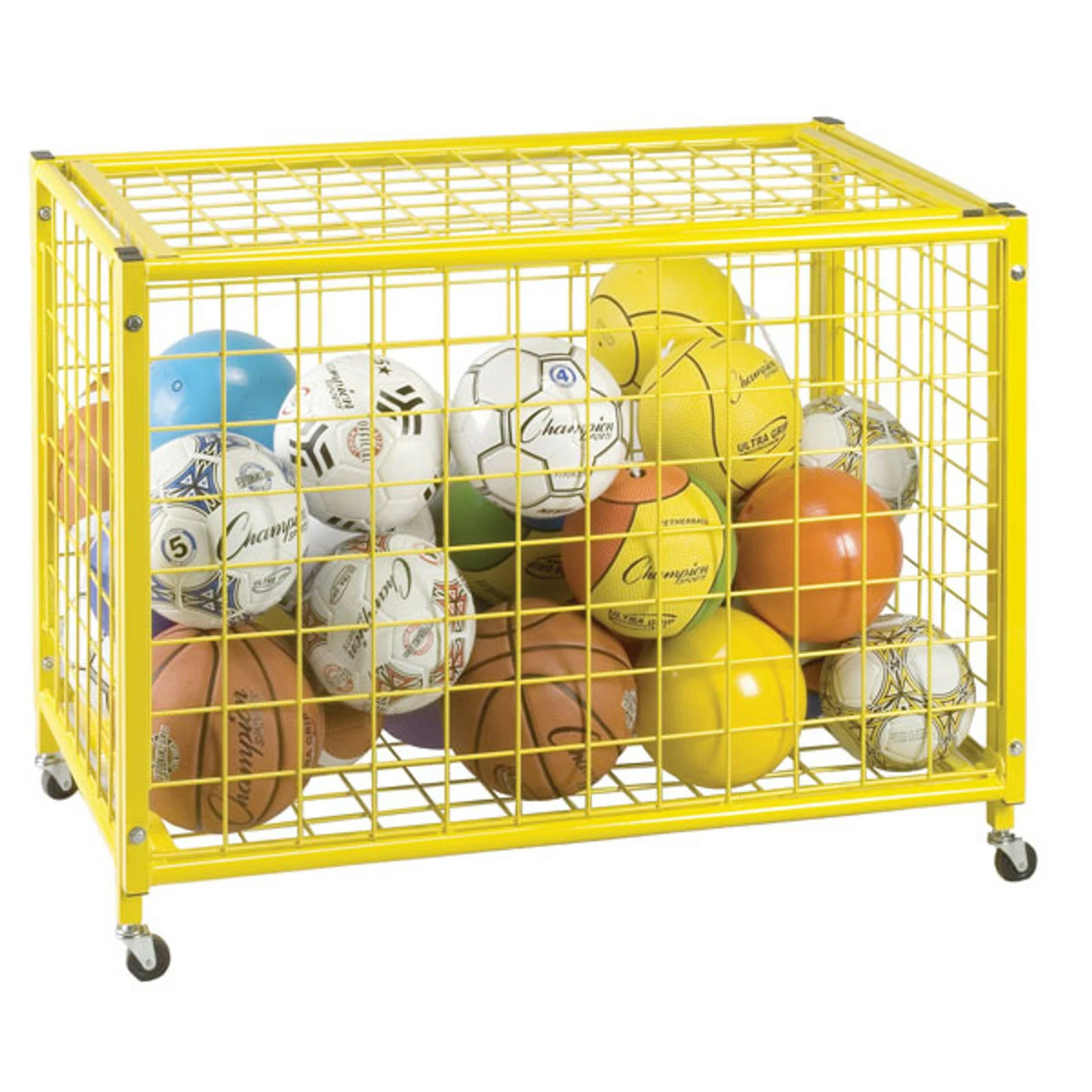 - Holds up to 30 basketballs, soccer balls, or playground balls