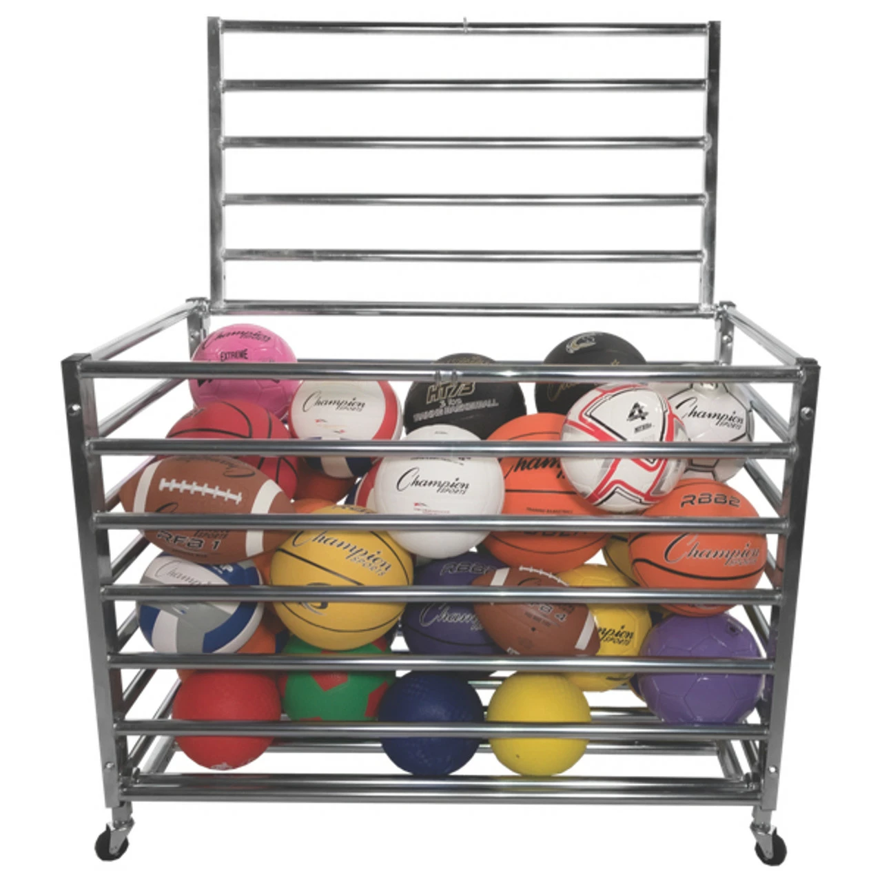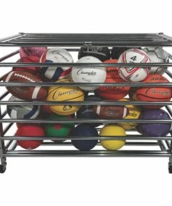 - Holds up to 30 basketballs, soccer balls or playground balls