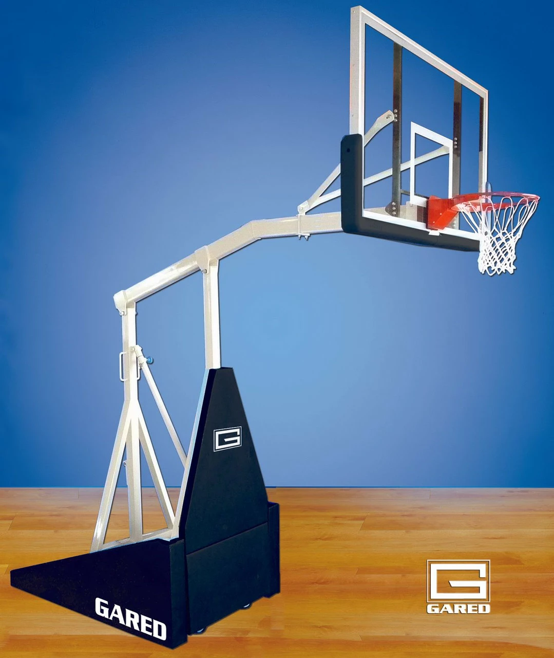 The Gared Hoopmaster LT Portable Basketball System is a high-quality, versatile hoop system that will feel at home in an indoor court or a quality outdoor court. Height adjustments and transportation are made easy. This hoop was designed for casual outdoor play or indoor intramural play. It also makes for a great side hoop.