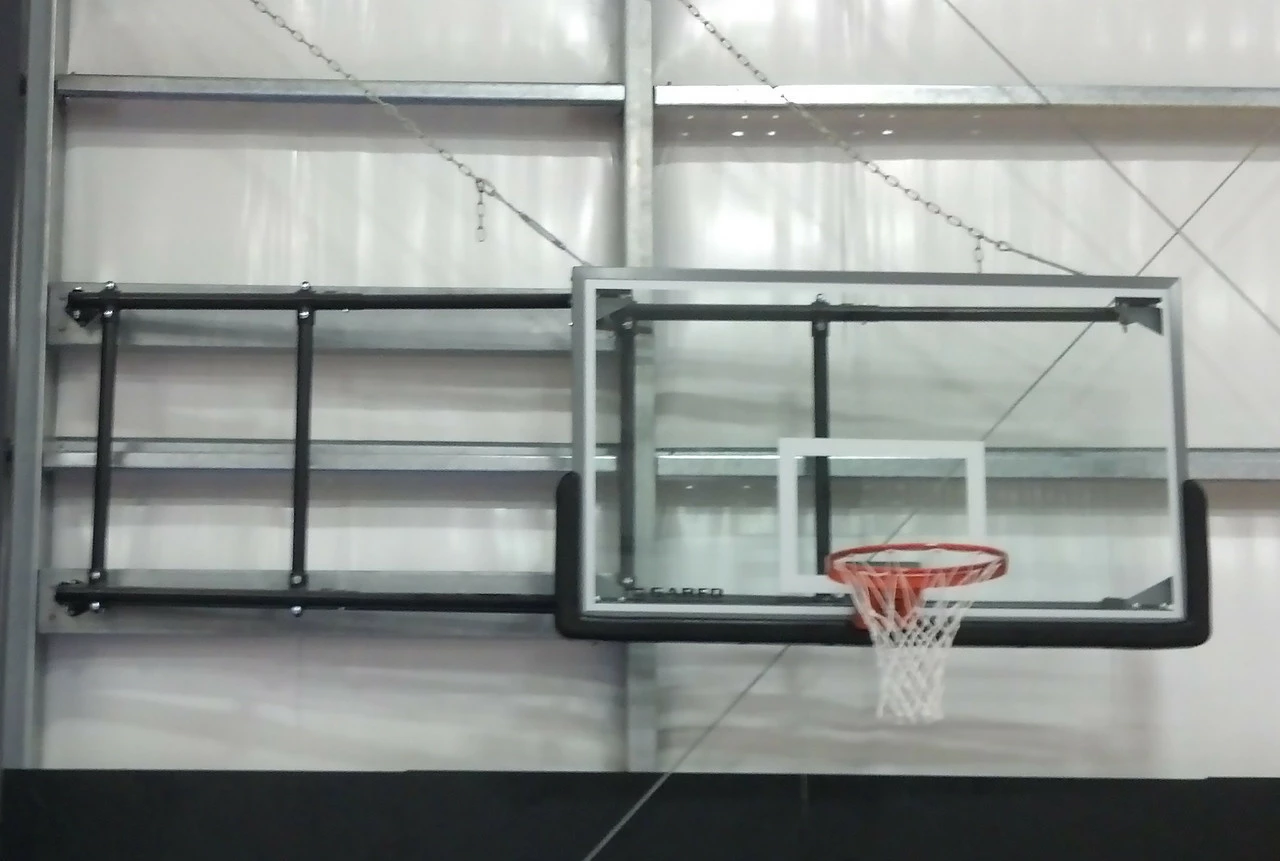 Gared’s 2500 Side-Folding Four Point Wall Mounted Basketball Hoop is an institutional quality hoop that is perfect for your gymnasium, rec center or home court. The support structure is constructed of rugged telescoping steel tubing allowing for wall-to-backboard extensions of anywhere from 4 feet to 12 feet, and allows the hoop to be folded to the side when you need to use your space for other activities. This model comes with a 72 inch competition glass backboard, competition breakaway rim, nylon net, backboard edge padding in your choice of color and an electric height adjuster with key switch. Customer supplies hardware used to mount structure to the wall. PLEASE NOTE: SHIPPING IS TO CURBSIDE. THE TRUCK DOES NOT HAVE A LIFTGATE AND THE DRIVER IS NOT REQUIRED TO HELP UNLOAD THE ITEM. PLEASE SELECT THE LIFTGATE OPTION ABOVE IF A LIFTGATE IS DESIRED.