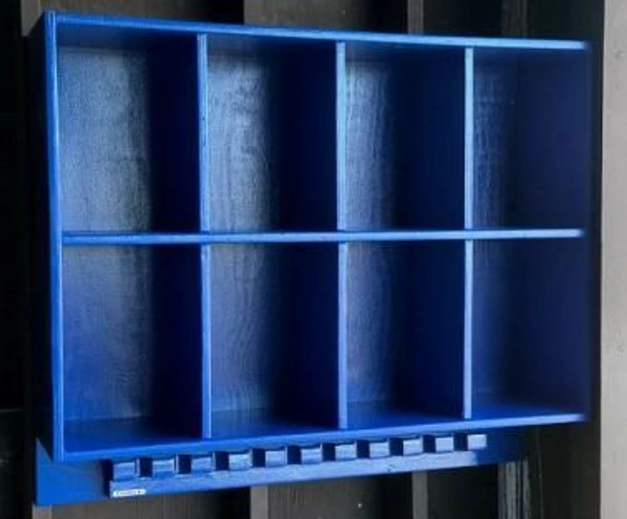- Holds Eight Baseball or Softball Helmets and Ten Bats in a One-Piece Unit