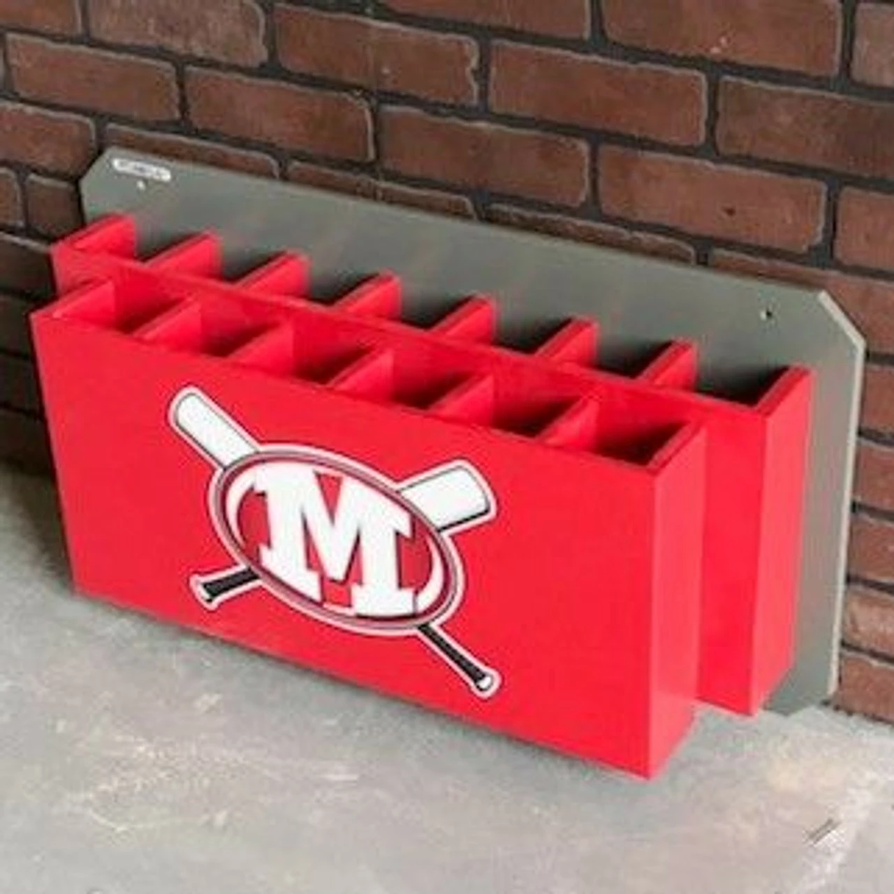 - Wall-Hugging Baseball Bat/Softball Bat Storage Rack Conserves Dugout Space and Keeps Equipment Organized